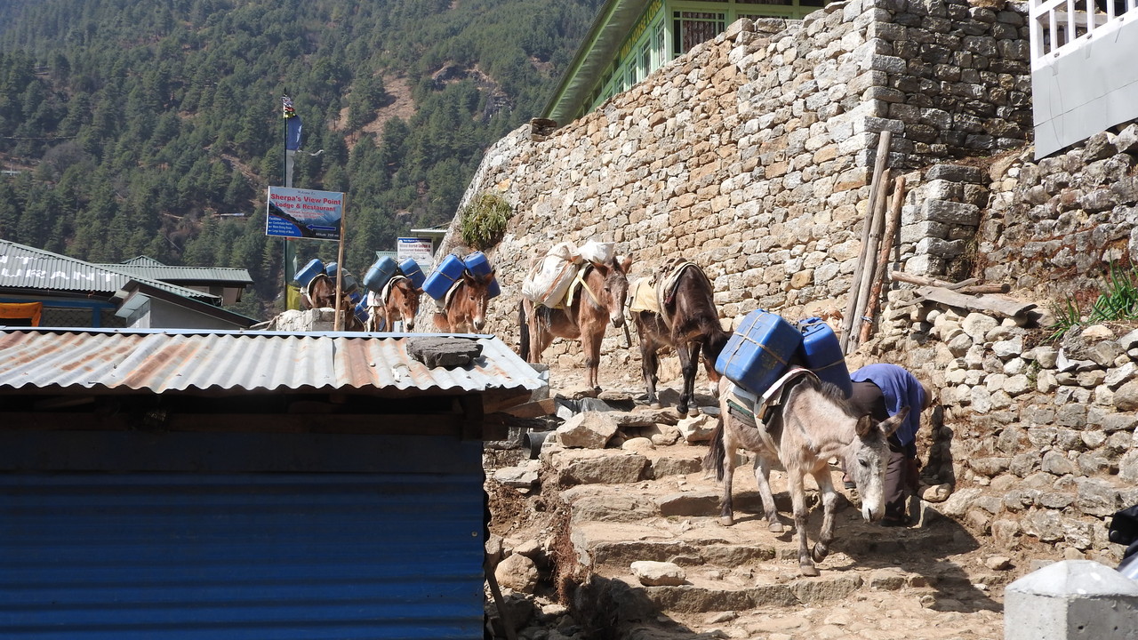 エベレスト街道は、道が狭く山道なので車は入ることが出来ません。