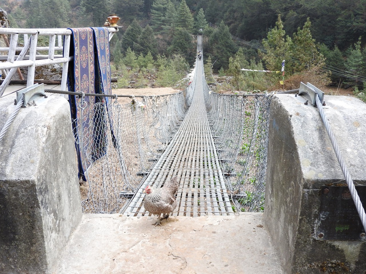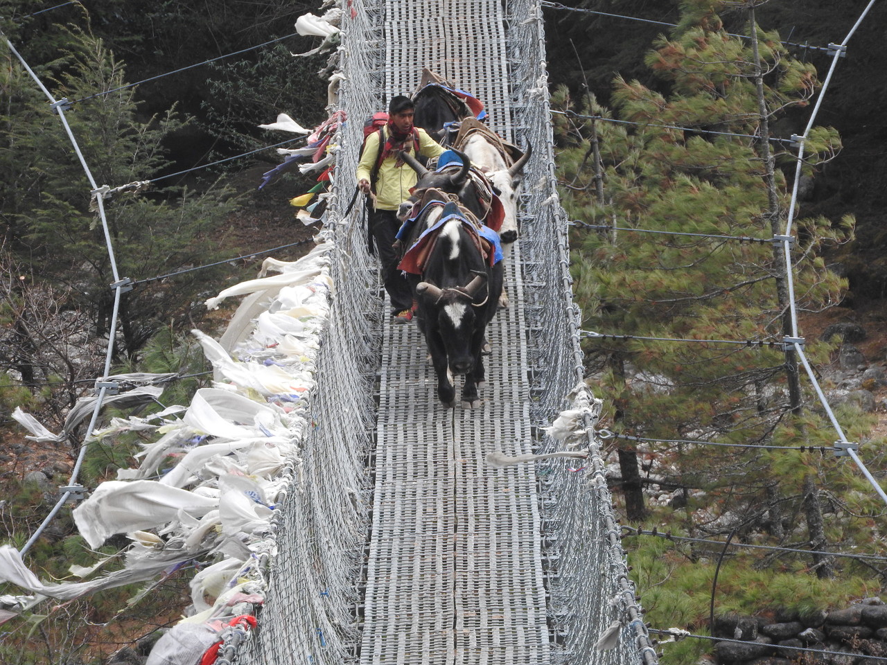 ゾッキョもつり橋を渡ります。
