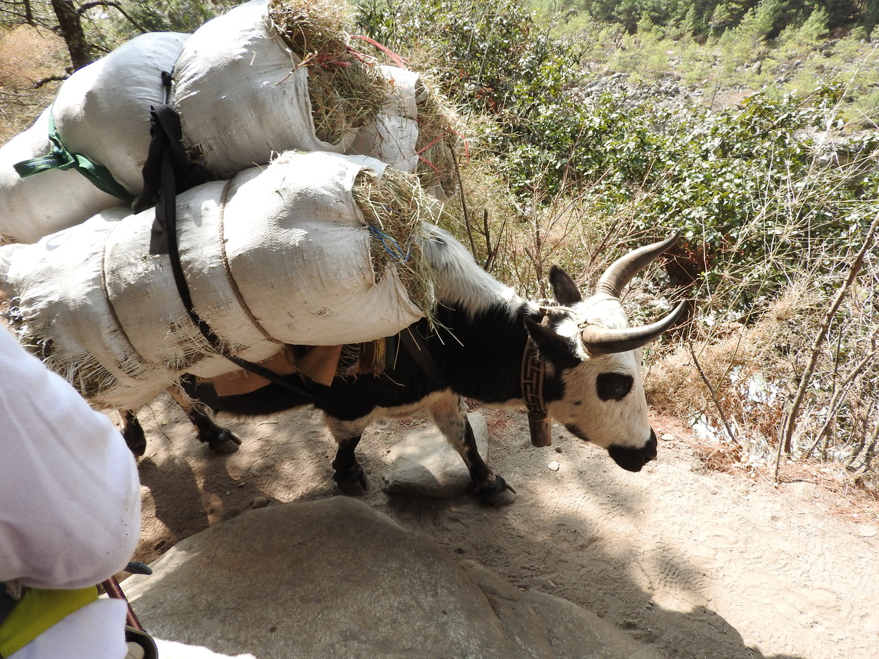 大きな荷物を背負ってゾッキョが歩いてきました。