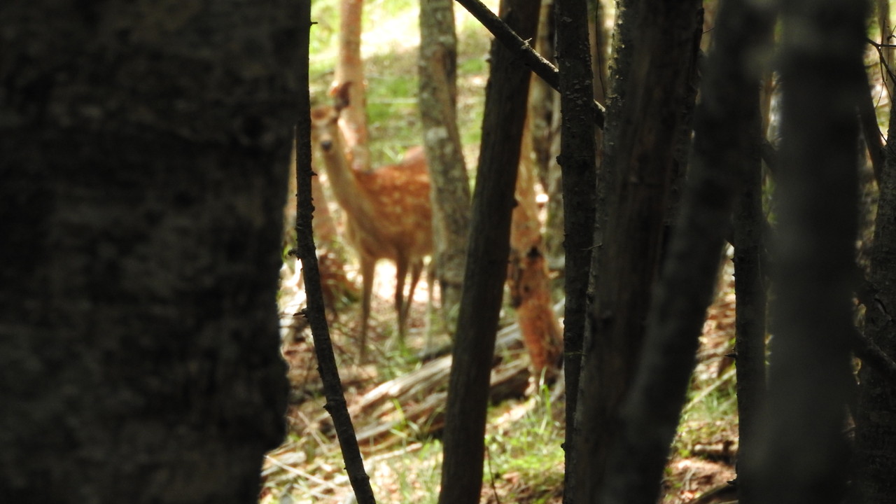 木立の中でこちらをじっと見ています。