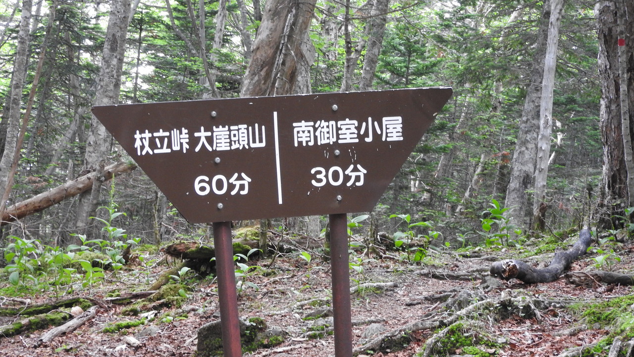 夜叉神の森→夜叉神峠小屋→(大崖頭山)・杖立峠→苺平・(辻山)→南御室小屋