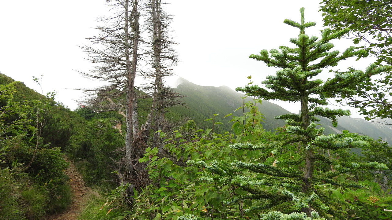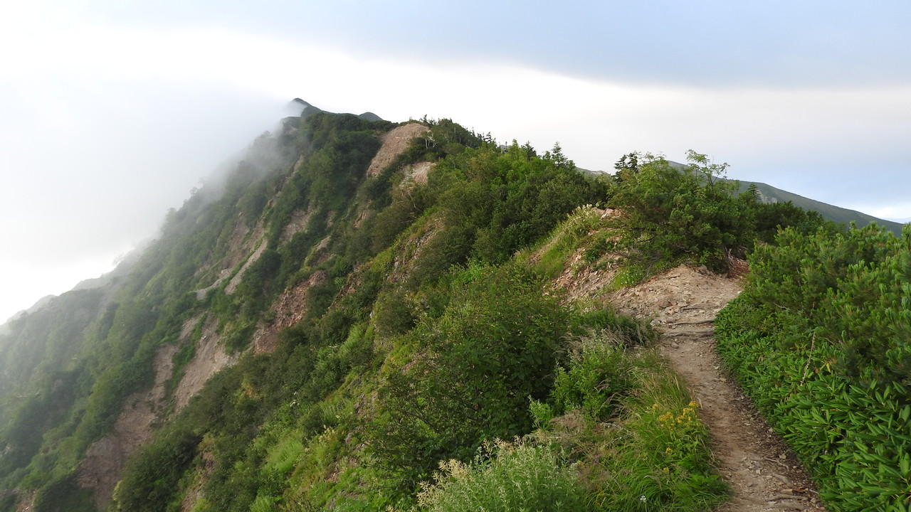 鹿島槍ヶ岳は霧の中です。残念。布引山だけが見えています。