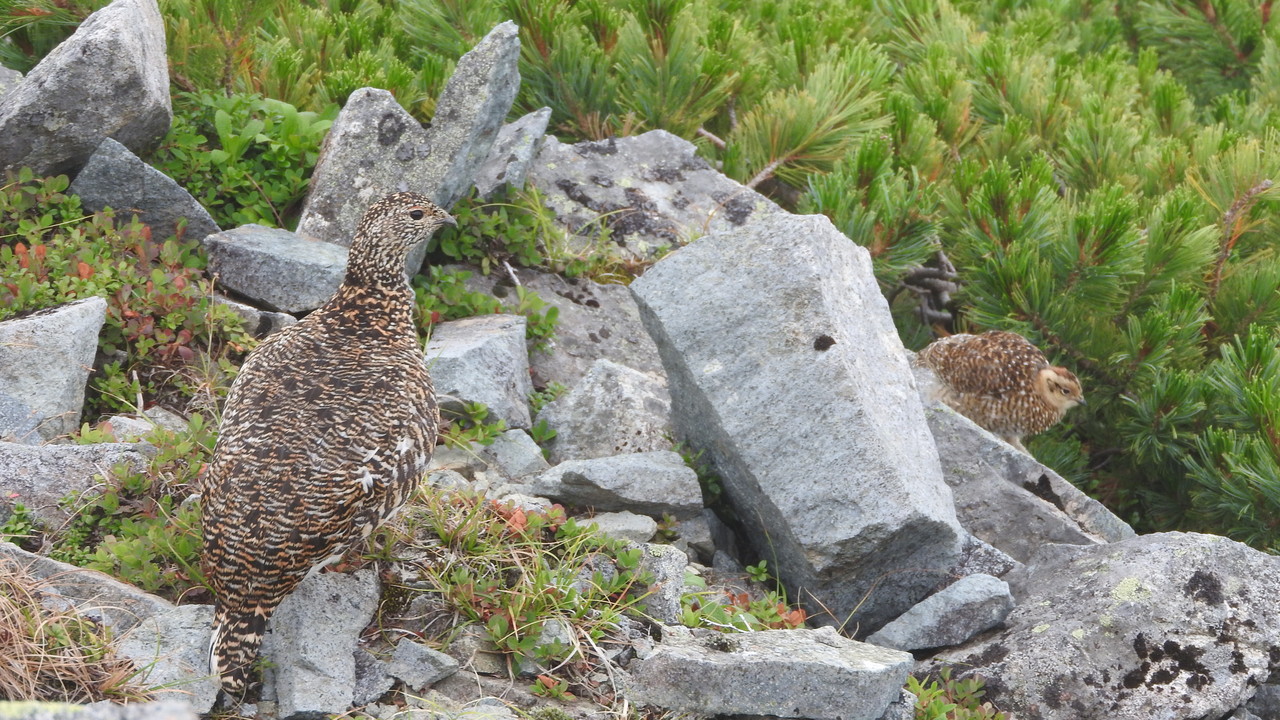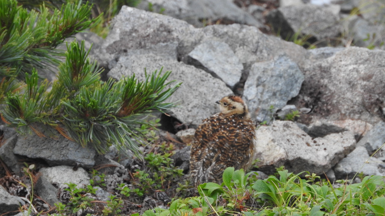 中峰に登ると、雷鳥が居ました。