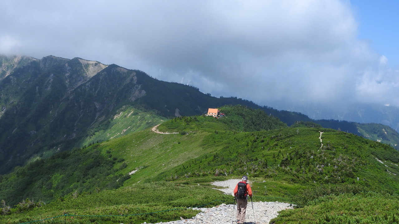 晴れていたら、昨日登った鹿島槍ヶ岳が見えたのに残念でした。